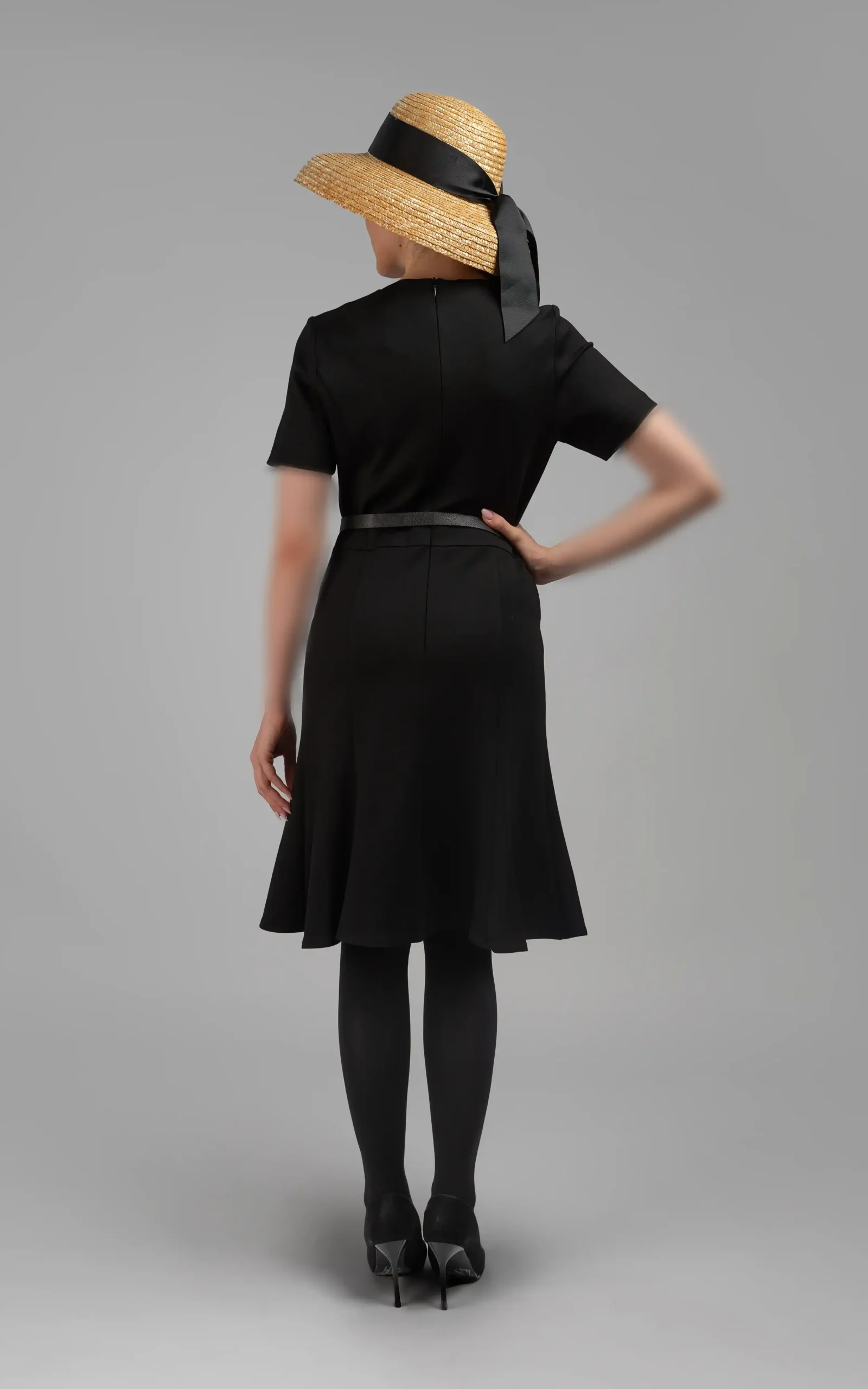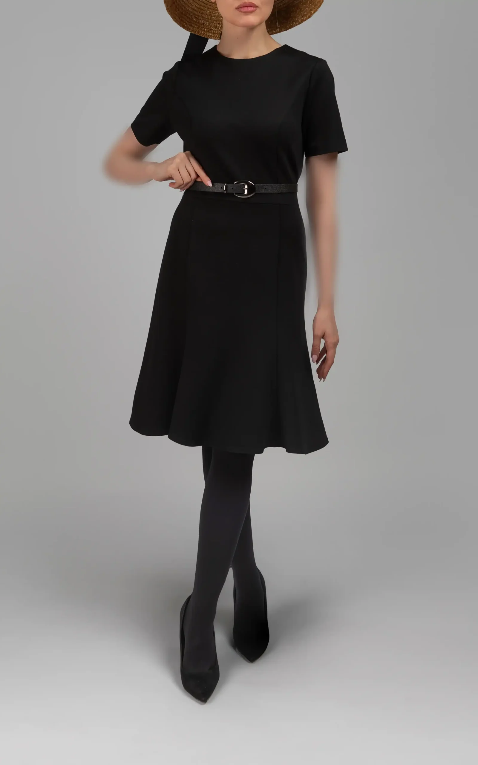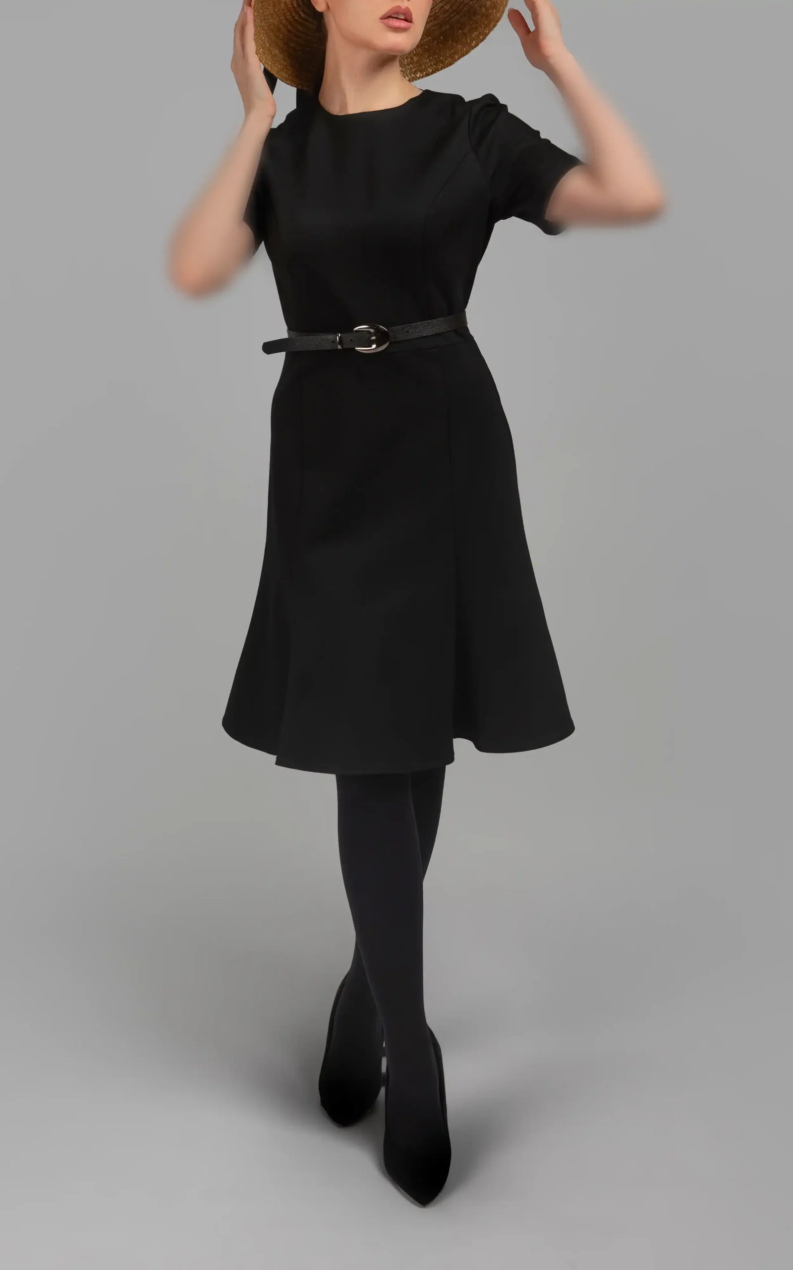 پیراهن زنانه کوتاه مشکی یقه گرد با کمربند ظریف برند نوادو کد 403114561627