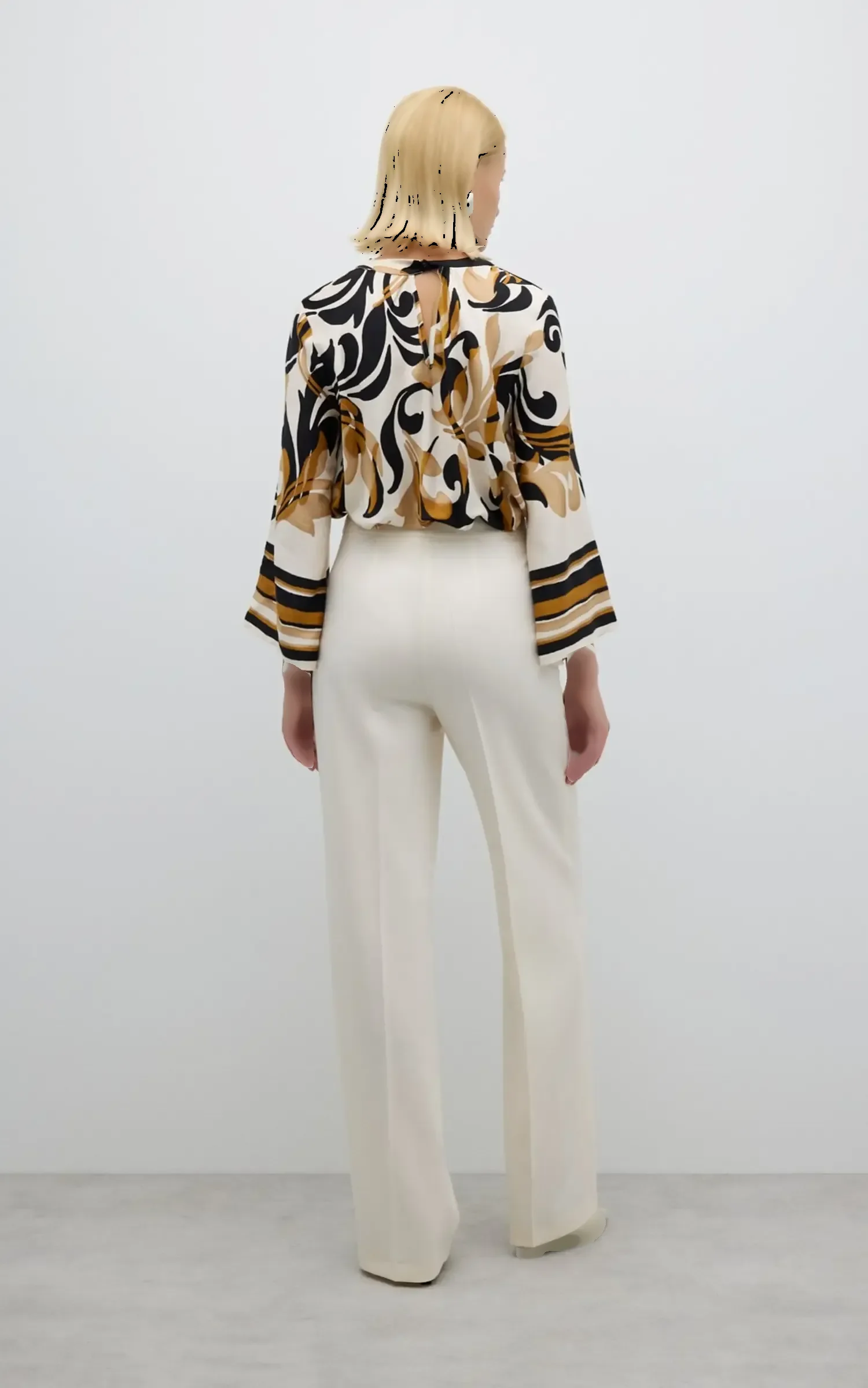 شومیز زنانه سفید استخوانی طرحدار و تنخور آزاد برند کلینز کد CL1077306