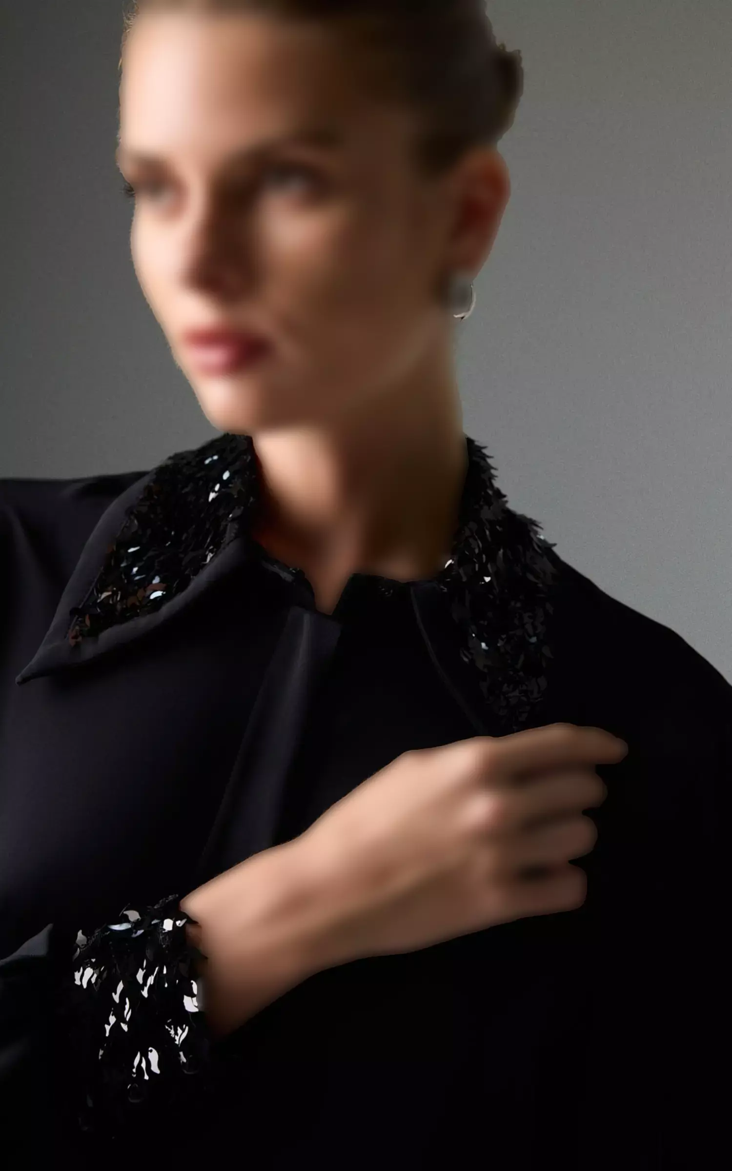 شومیز زنانه مشکی با جزئیات عمودی و استایل لایهبندی شده برند IPEKYOL کد IS1250025090