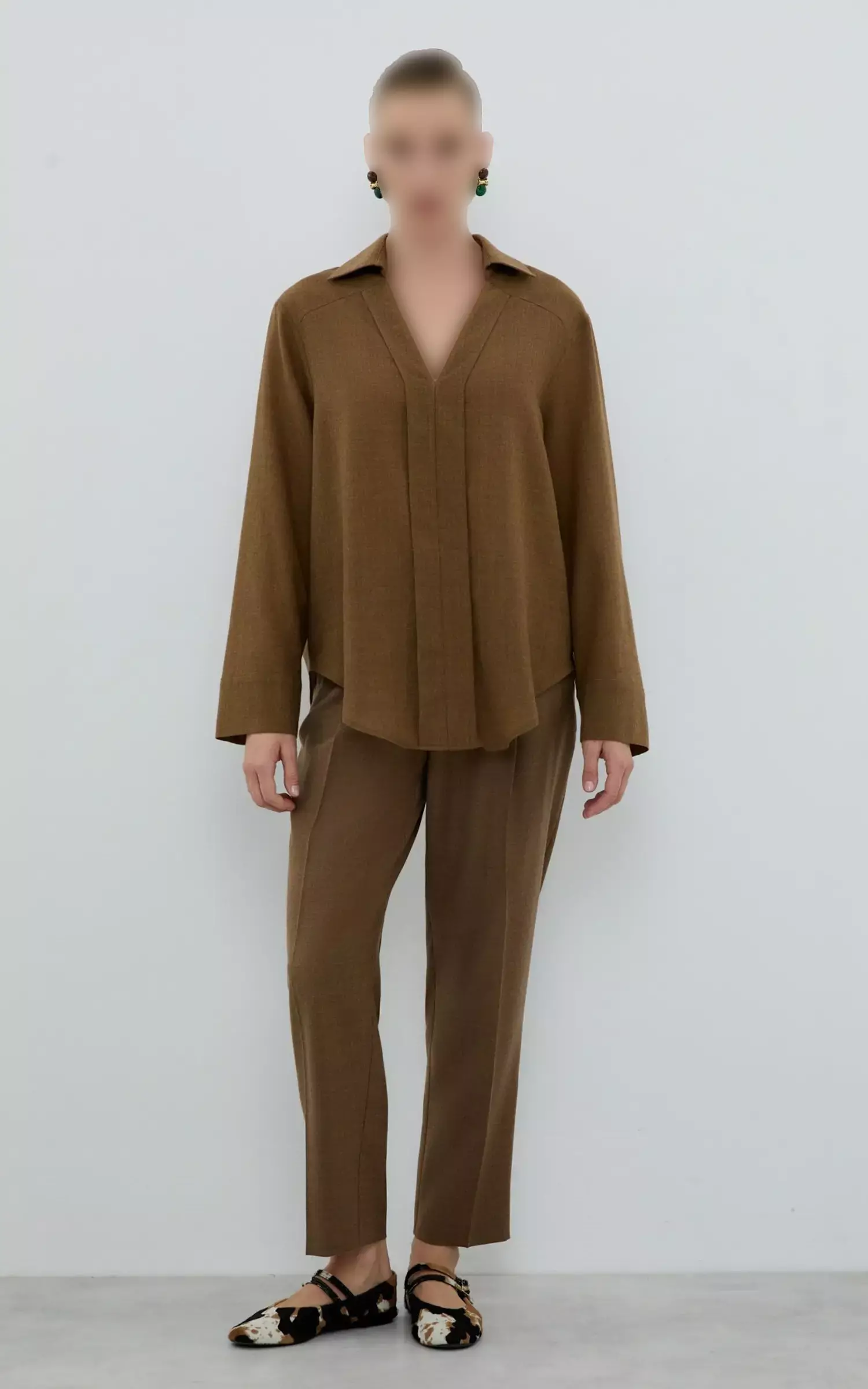 شومیز زنانه سفید استخوانی طرحدار و تنخور آزاد برند کلینز کد CL1077306